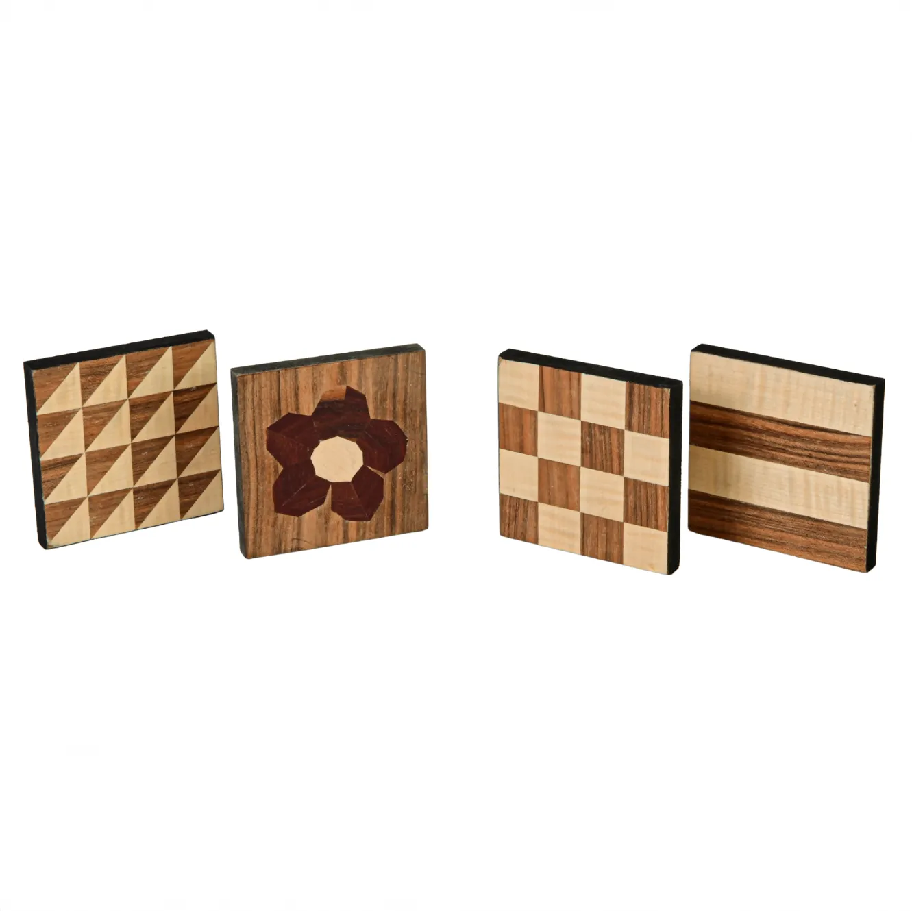 Les dessous de verres en marqueterie de bois sont une excellente initiation à l’art délicat de la marqueterie. Pensés pour les débutants, ils permettent d’apprendre pas à pas les bases de cette technique tout en réalisant un objet décoratif et utile du quotidien. Le principe est simple : assembler de fines feuilles de bois de différentes essences et couleurs pour créer des motifs originaux et élégants, qui donneront à chaque dessous de verre une identité unique. Faciles à manipuler et rapides à réaliser, ces pièces sont idéales pour découvrir le plaisir de travailler le bois tout en développant précision et minutie.