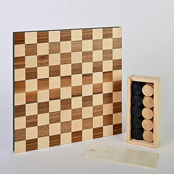 Le Damier est un projet décoratif en marqueterie de bois, pensé pour un niveau intermédiaire. Ce kit permet d’apprendre à créer un motif géométrique précis en assemblant des carrés de bois de différentes essences. Chaque pièce peut être positionnée librement pour varier les rendus, ce qui te permet de développer sa créativité tout en travaillant sa précision et sa patience. Le résultat final est un damier élégant et harmonieux, idéal comme objet décoratif ou plateau de jeu.